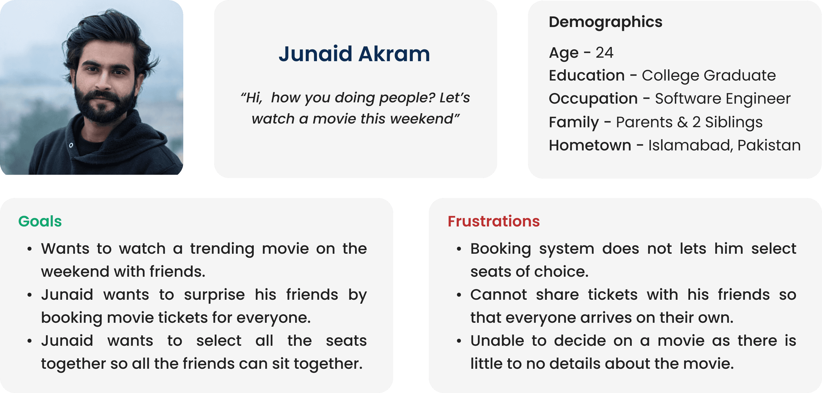 So moving forward I found Junaid 's persona to be the ideal one. The needs of this persona aligned with the core issue and served as good starting point for design ideas.